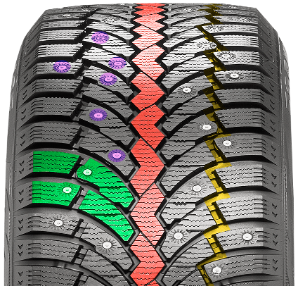 2. СПЕЦИАЛЬНАЯ ФОРМА ШИПА - надежная посадка и сохранность шипов в течение всего срока эксплуатации шины. Высокий уровень сцепления на обледенелых поверхностях за счет хорошей проницаемости сердечника шипа в лед.